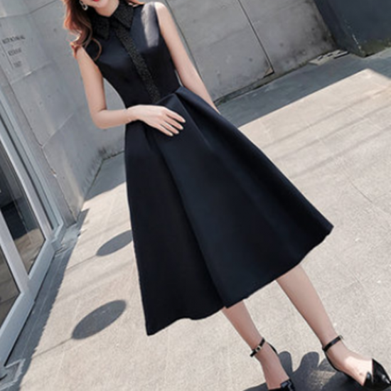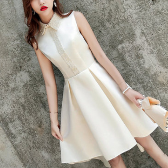 ビーズをあしらった襟付きドレスで、レディなパーティスタイルに♪