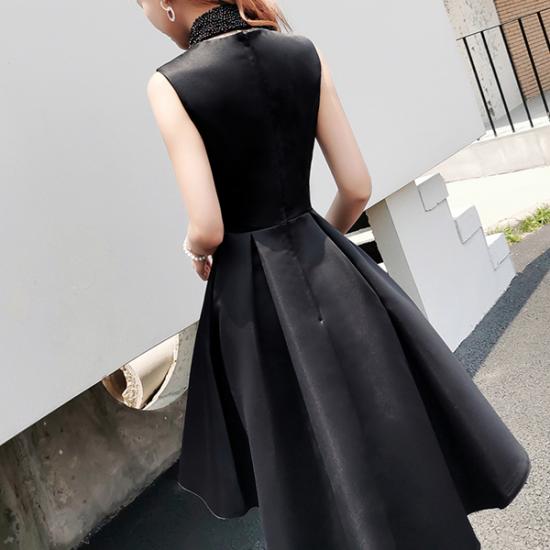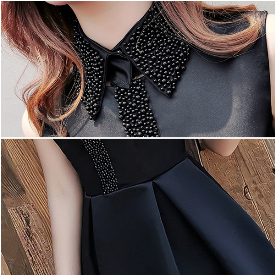 ドレス ビーズ 襟付き レディ 光沢 立体シルエット きちんと感 結婚式 二次会 お呼ばれ