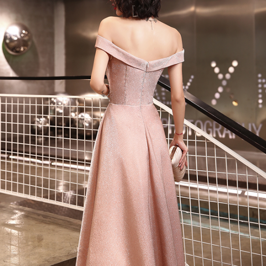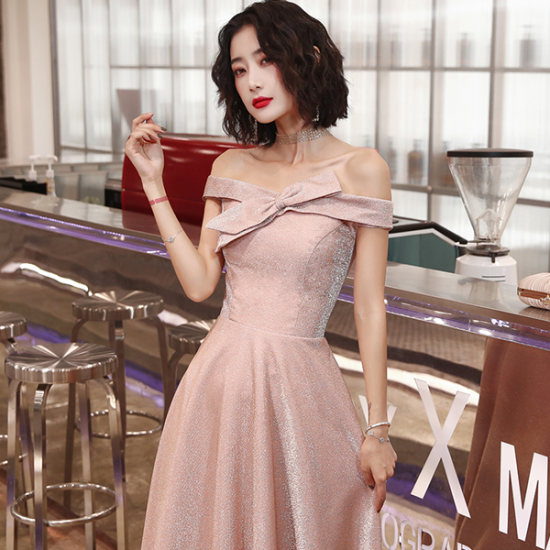 ドレス ロールカラー リボン 上品リッチ イブニングドレス ラメ フォーマル 端正 結婚式 二次会 お呼ばれ