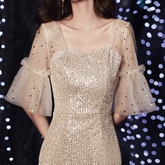 ドレス スパンコール 女らしさ マーメイド キャンディスリーブ 二の腕カバー 大人 夜会 結婚式 二次会 お呼ばれ