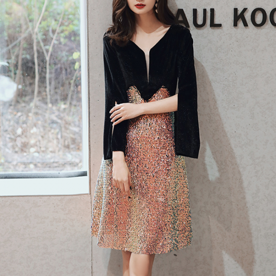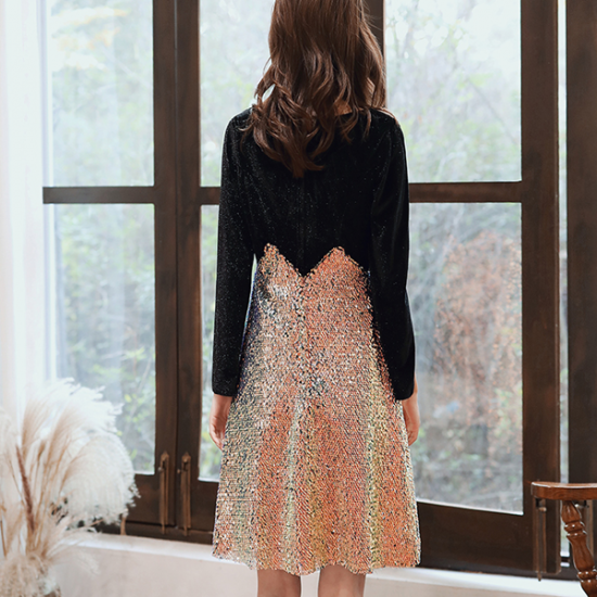 ドレス スリット袖 異素材 ゴールド スパンコール インパクト 個性 結婚式 二次会 お呼ばれ