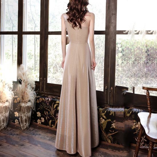 ドレス ウエストリボン ロング丈 アシンメトリー ラメ 上品 輝き 高貴 ドレープ クラシカル スタイリッシュ 結婚式 二次会 お呼ばれ