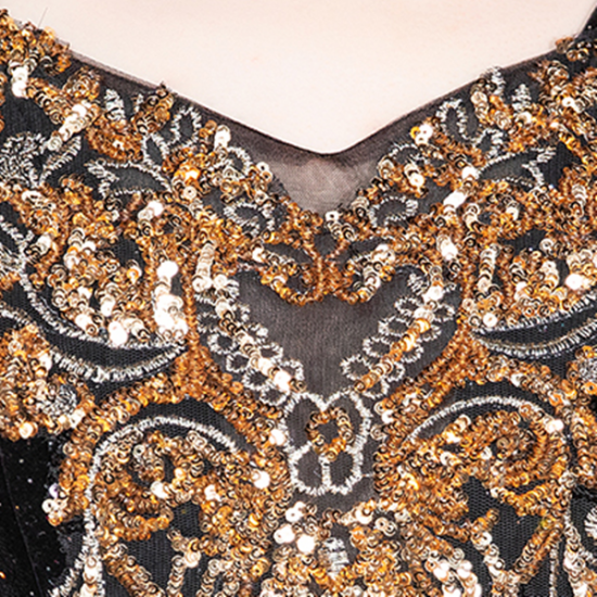ヨーロピアンシックなムード漂う、ブラック×ゴールドのロングドレス。