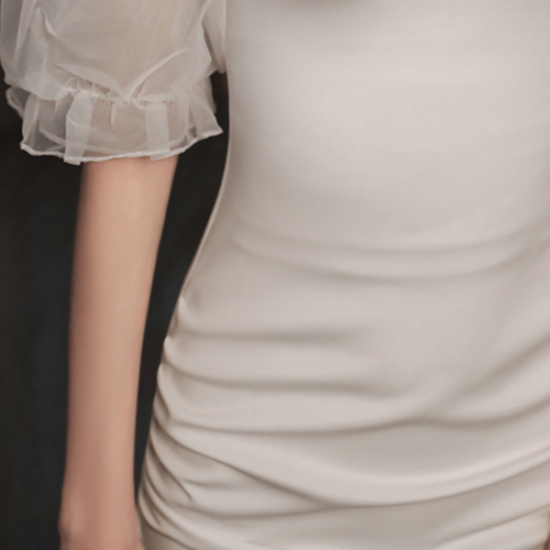 スリムフィットなデザインに、シアースリーブで透明感をプラスしました。