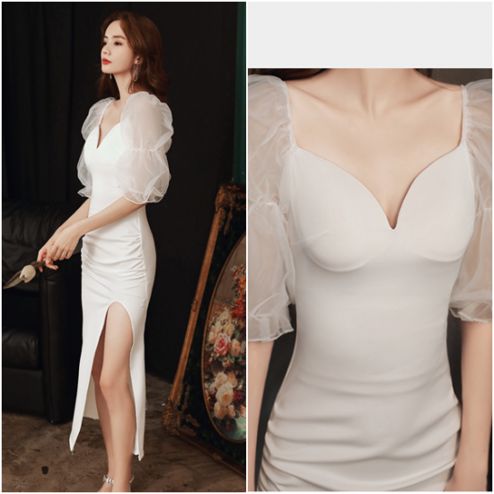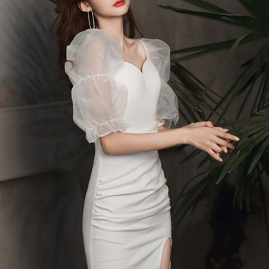 ドレス ハートネック 深スリット 色香 オフショルダー スリムフィット シアースリーブ 透明感 大人 パーティー 結婚式 二次会 お呼ばれ