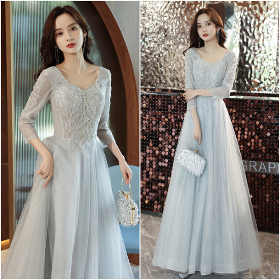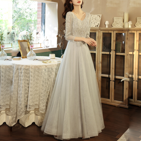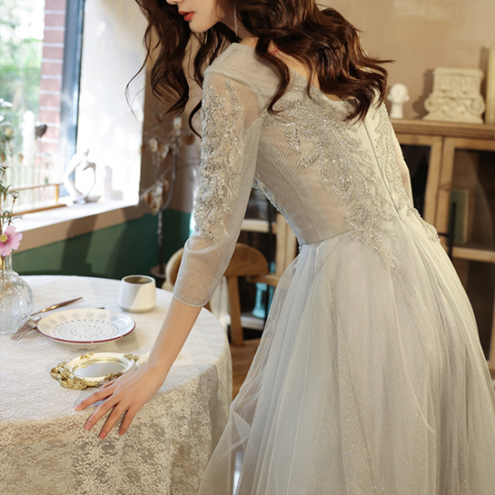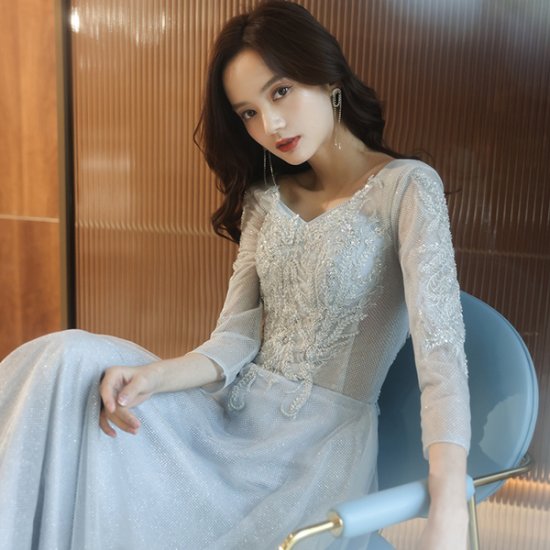 ドレス ペールトーン オーガンジー 透け感 刺繍 可憐 好印象 上品見え 結婚式 二次会 お呼ばれ