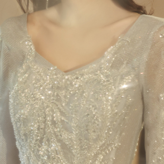 袖と胸元には同色の刺繍をあしらい、可憐なルックスに。