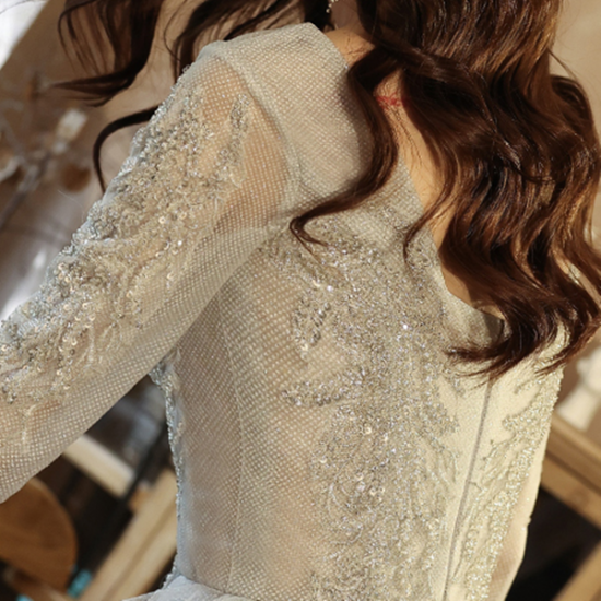 ペールトーンが肌を明るく見せる、オーガンジー刺繍ドレスです。