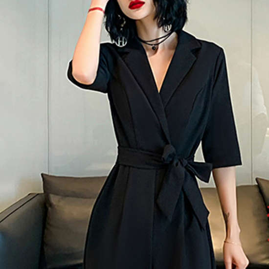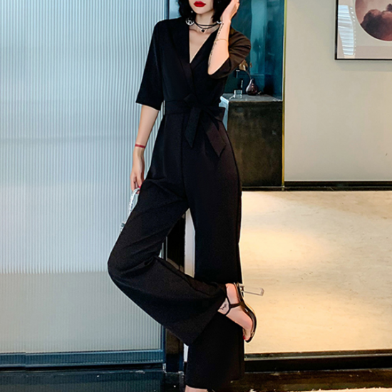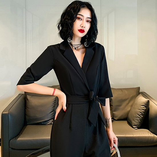 マニッシュさと女らしさを両立させた、ドレッシーなパンツドレスです。