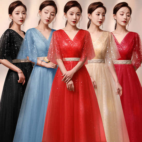 ドレス 光沢カラー 上品 シルバープリント シースルー きれい見え フレアスリーブ スパンコール 華やか 結婚式 二次会 お呼ばれ