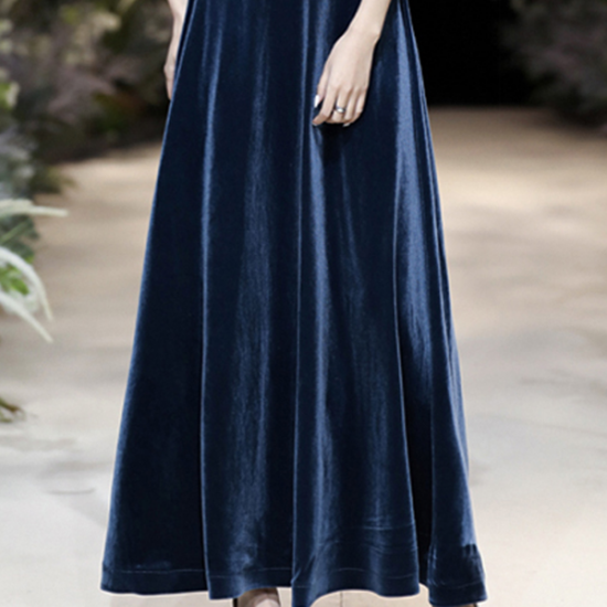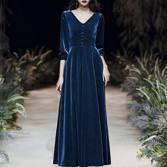 ベルベットが艶っぽいシックなカラーのロングフレアドレス。