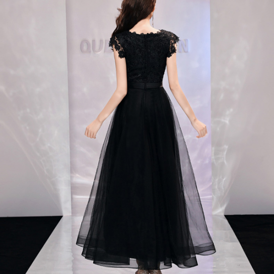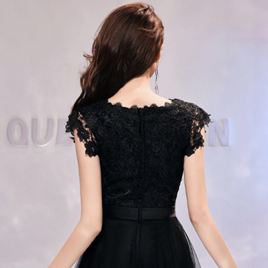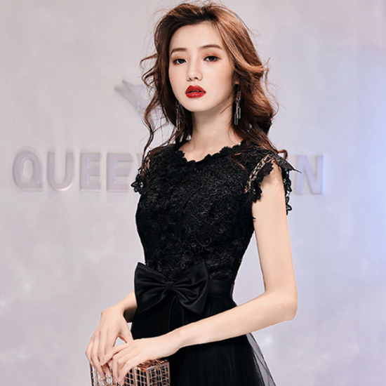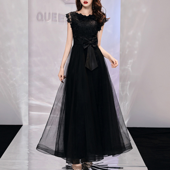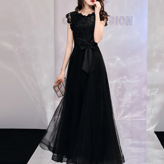 ドレス 透かし編みレース レディ ウエストリボン シアー ロングチュール 気品 大人 エレガント 結婚式 二次会 お呼ばれ