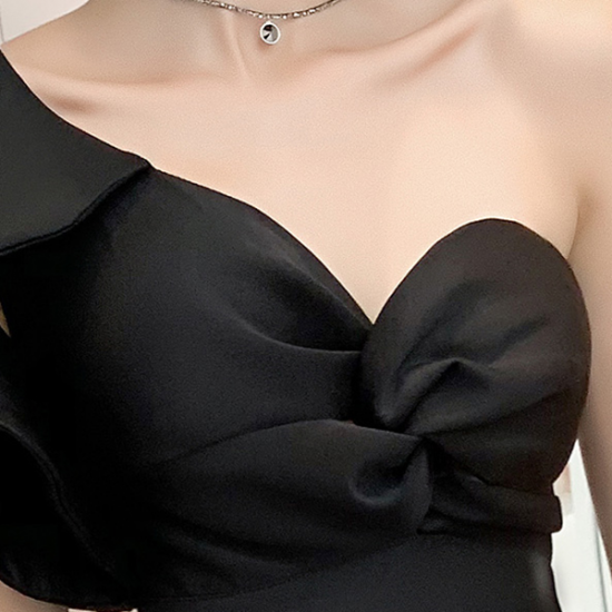 アシンメトリーなフリルデザインが魅惑的なボディラインをメイク。