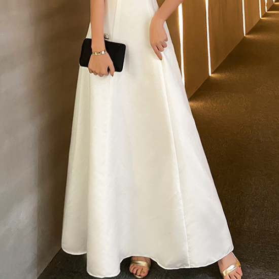 清純な白でパーティーの主役になれる、Aラインロングドレス。