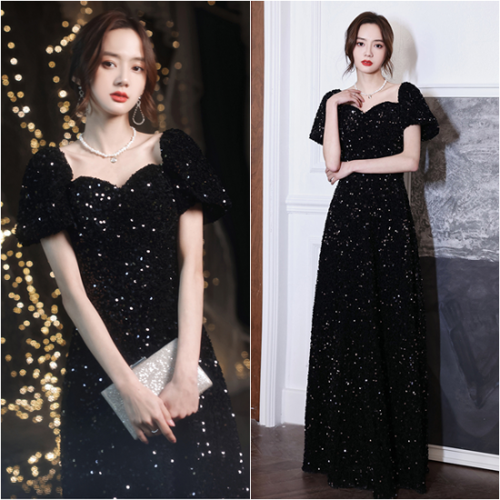 ドレス 煌びやか スパンコール ラグジュアリー イブニングドレス ハートネック 2WAY袖 エレガント 鮮度 特別 結婚式 二次会 お呼ばれ
