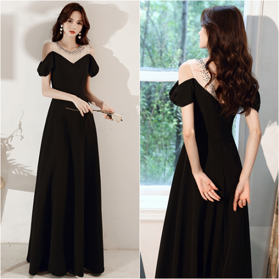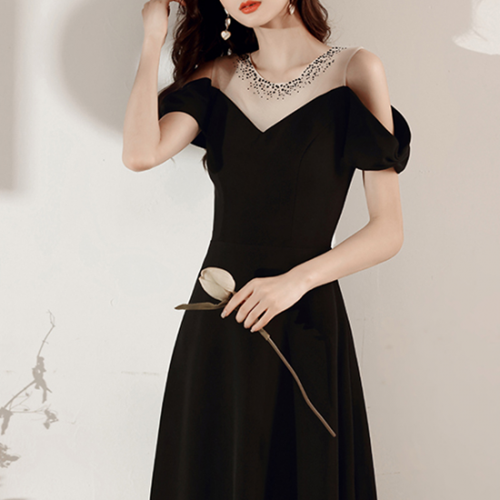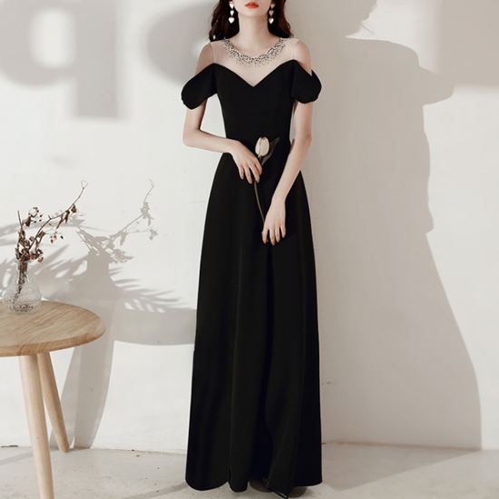 肩見せで女らしさを演出する、ドレッシーなイブニングドレス。