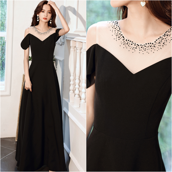 ドレス 肩見せ 女らしさ ドレッシー イブニングドレス メッシュ スパンコール スレンダーライン スタイルアップ 結婚式 二次会 お呼ばれ