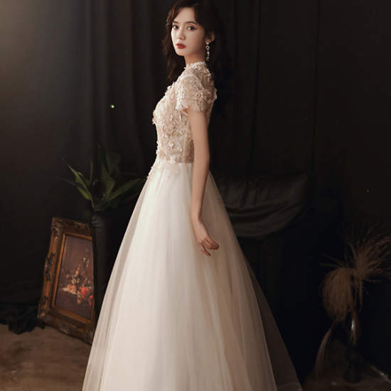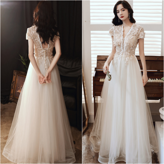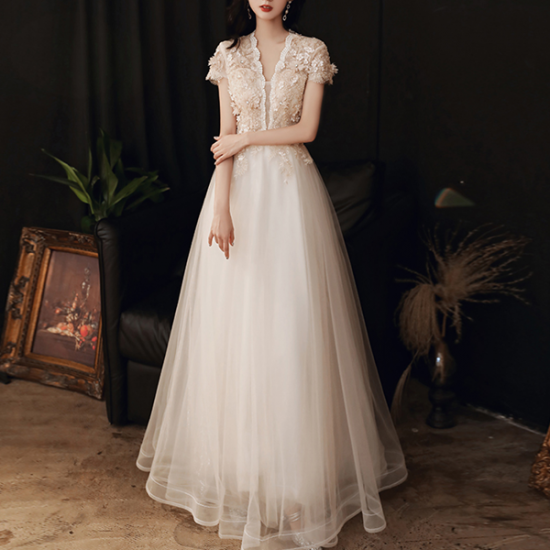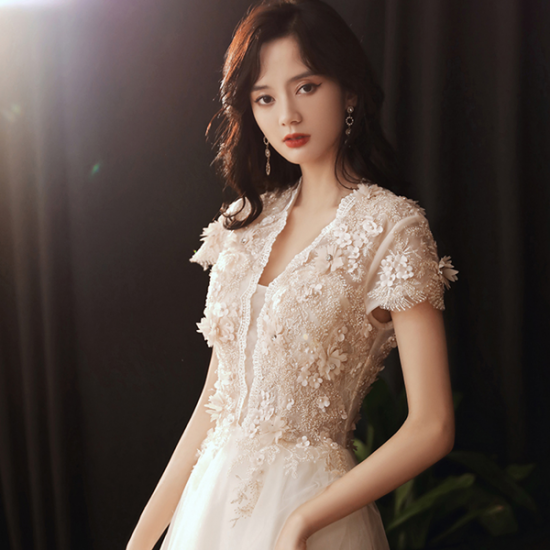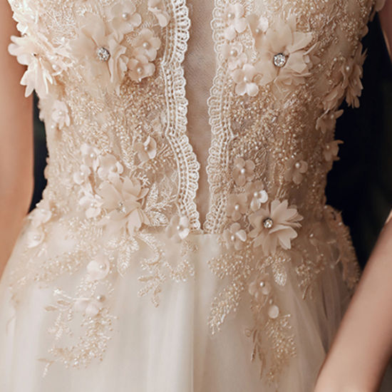 ドレス スカラップレース 花モチーフ 上品エレガント レースアップ クラシカル ロングチュール 女性らしい 結婚式 二次会 お呼ばれ