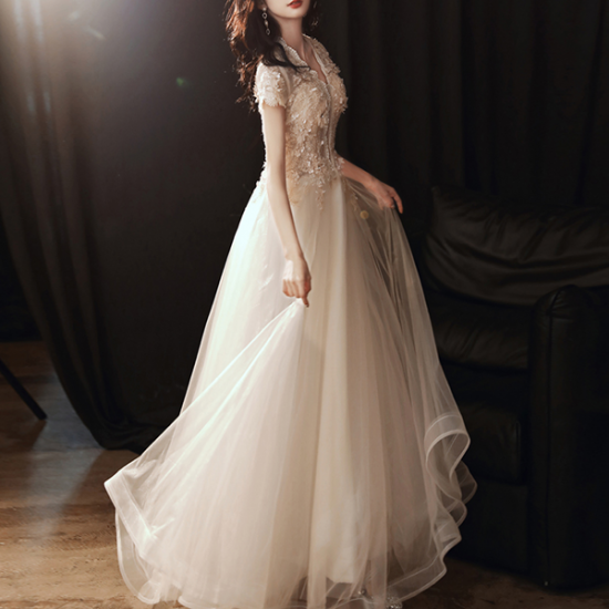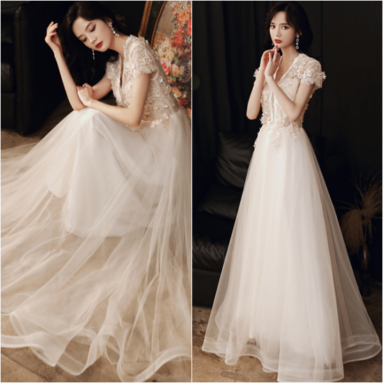 ふわりと揺れるロングチュールで、女性らしいドレスアップが叶います。