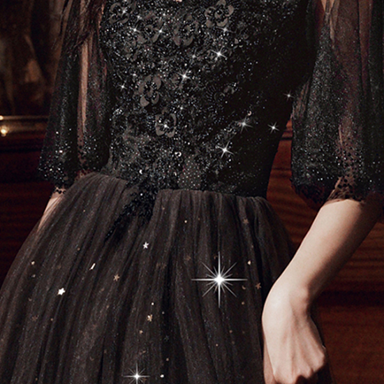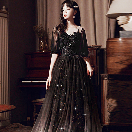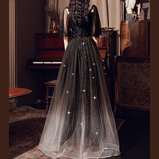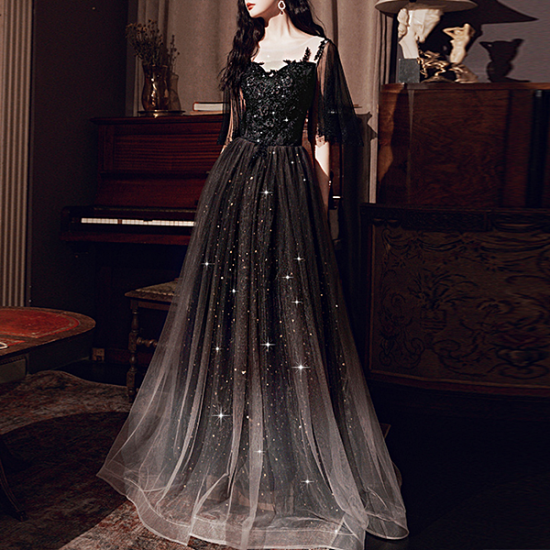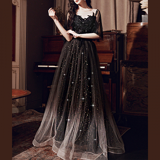 ドレス ラグジュアリー グラデーションチュール フラワーモチーフ ビーズ刺繍 シアースリーブ 色香 着映え 存在感 オケージョン ステージ 結婚式 二次会 お呼ばれ