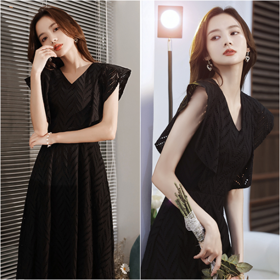 ドレス ボーラーレース ブラック ロング丈 レディ シック 美人 お洒落 ラウンドネック 結婚式 二次会 お呼ばれ