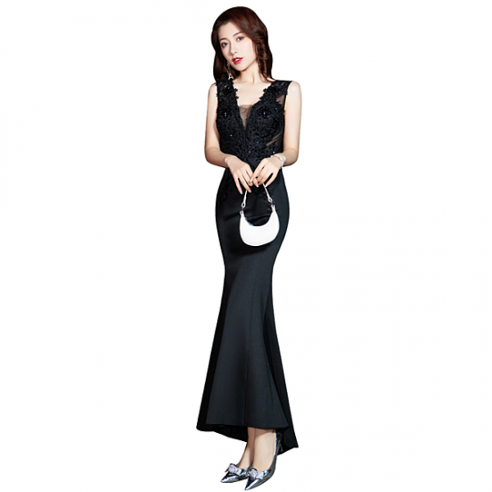 ドレス 繊細 フラワーレース メッシュ セクシー ロング丈 フィット マーメイドライン 大人 シアー バックシャン 結婚式 二次会 お呼ばれ