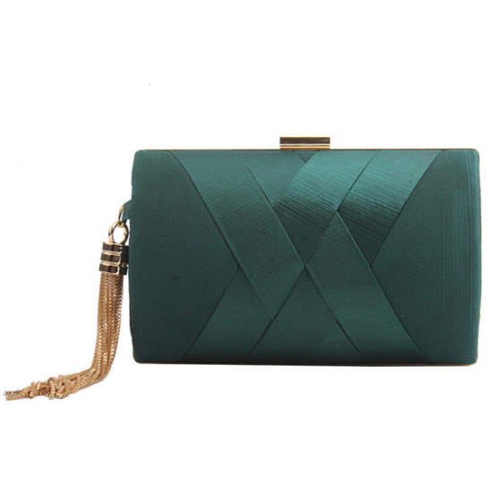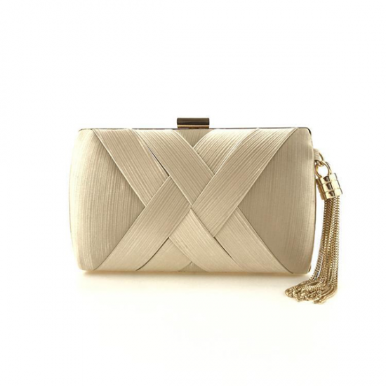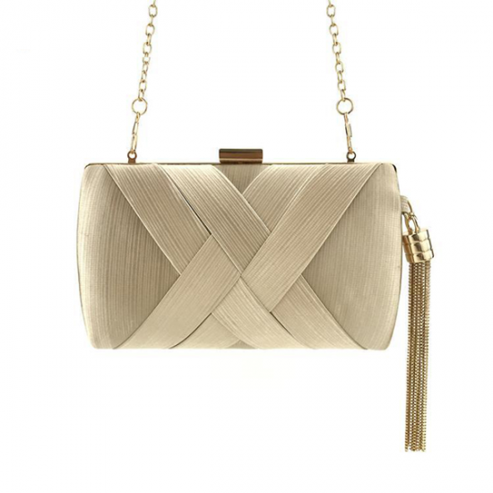 クラッチバッグ 編み込み クロスデザイン 大人エレガント ゴールドタッセル 高級感 チェーン取り外し可能 差を付ける 個性的 結婚式 二次会 お呼ばれ