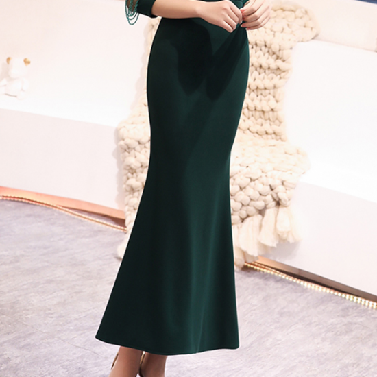 Vネック×マーメイドラインが女らしく、センスのよさが際立つ一枚です。
