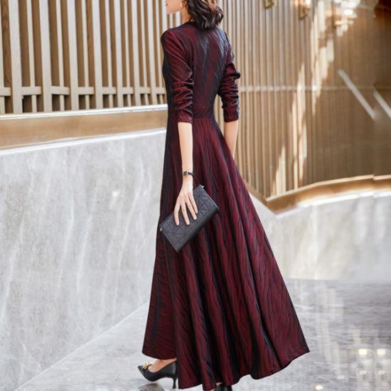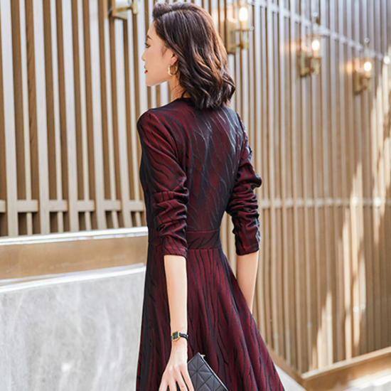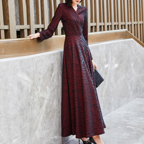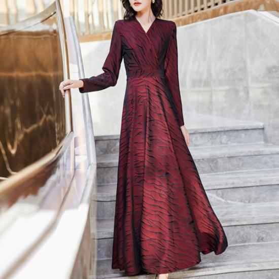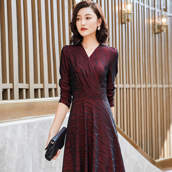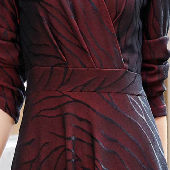 秋冬に似合うワインレッドでドレッシーに装うカシュクールドレス。