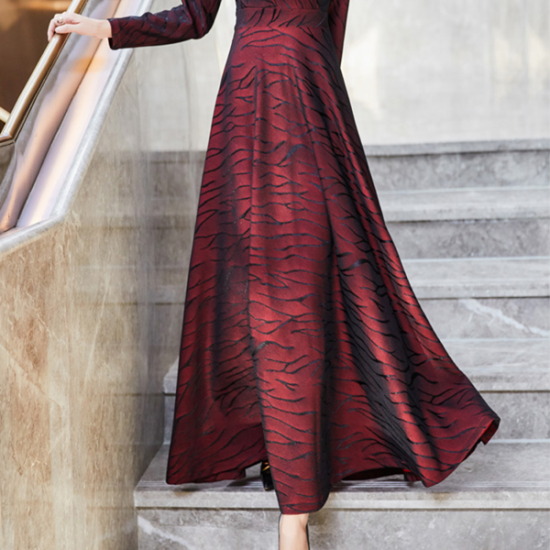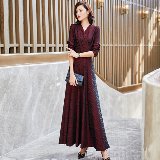 ドレス 秋冬 ワインレッド ドレッシー カシュクール さざ波 刺繍メッシュ 陰影 美ドレープ ロング丈 結婚式 二次会 お呼ばれ