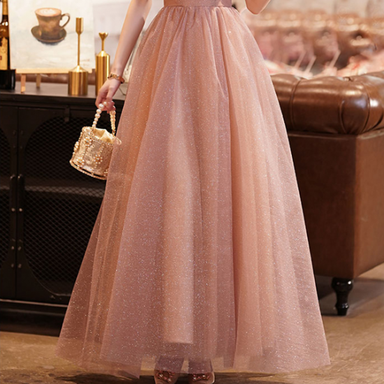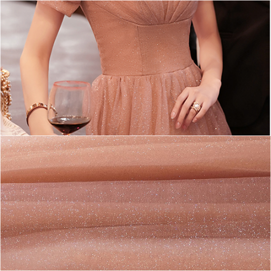 上品ラメが煌めくワントーンのロング丈ドレスは、