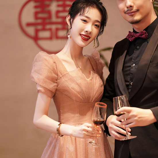 ふんわりパフスリーブと優雅なフレアで女性らしく。