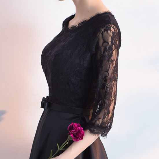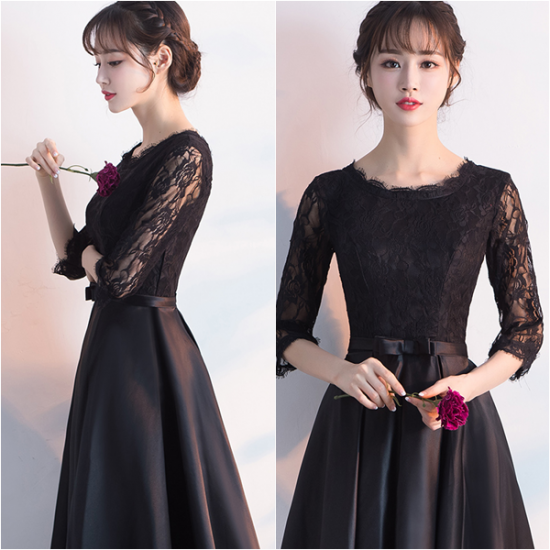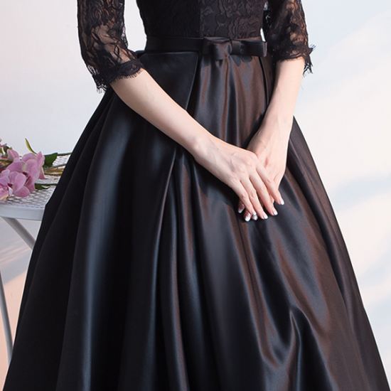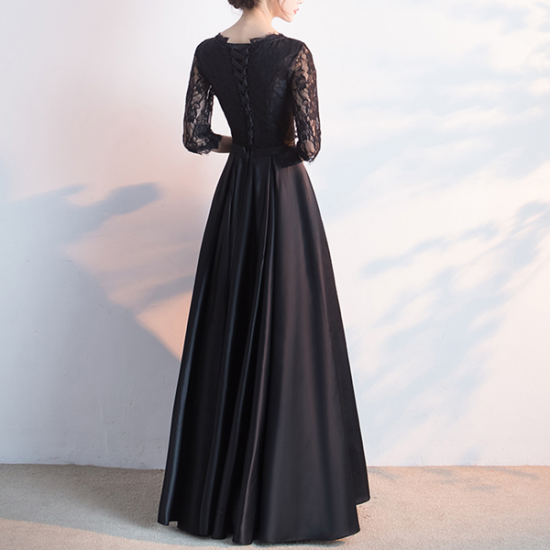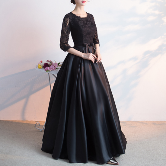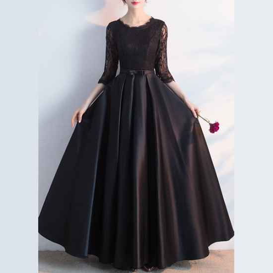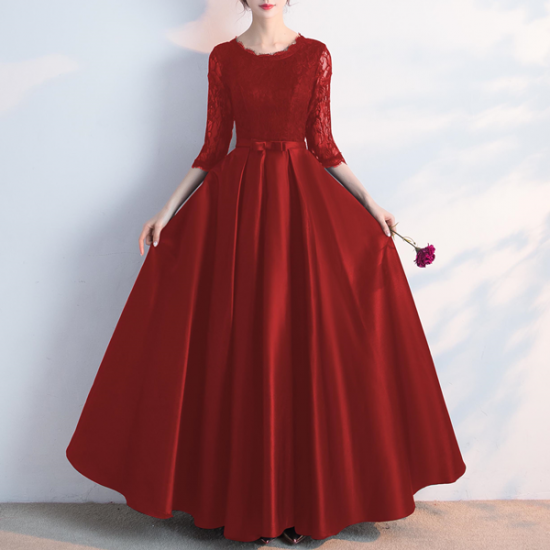 クラス感をまとったレース×サテンのフルレングスドレスです。