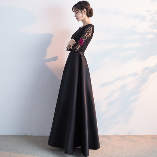 ドレス クラス感 レース サテン フルレングス 薔薇柄レース 贅沢 フレア エレガント 格式 ステージ 結婚式 二次会 お呼ばれ