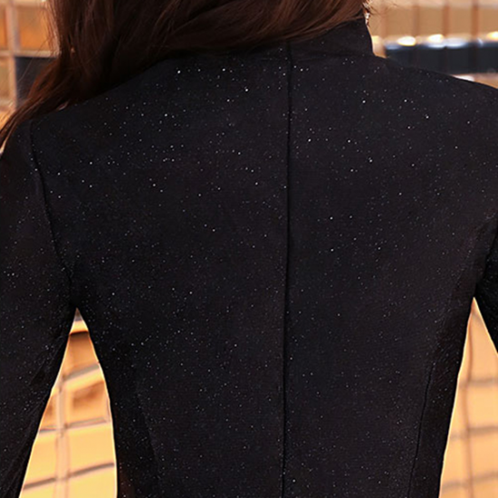 全身に極小ラメを纏わせたモダンな5分袖チャイナドレス。