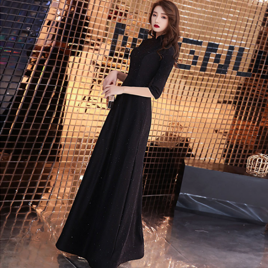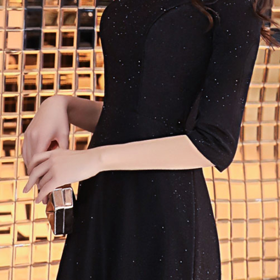 ドレス 極小ラメ モダン 5分袖 チャイナドレス スリムライン スタイルアップ ハイエンド 大人好み 結婚式 二次会 お呼ばれ