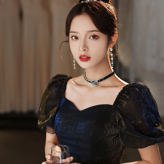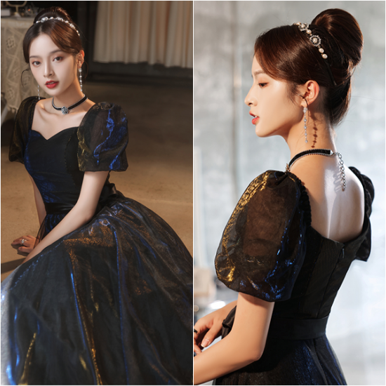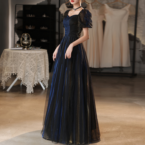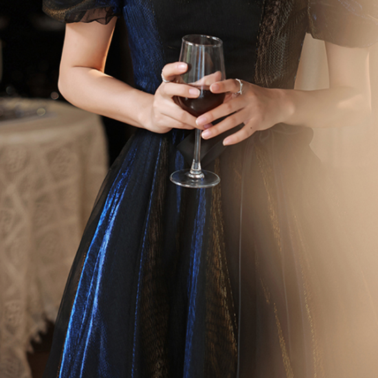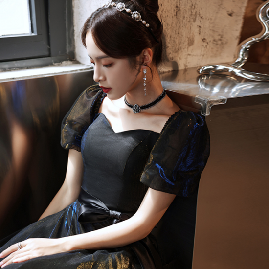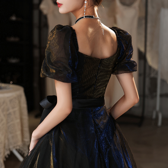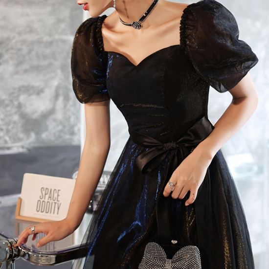 オーロラのように複雑な煌めきを放つ、パフスリーブAラインドレス。