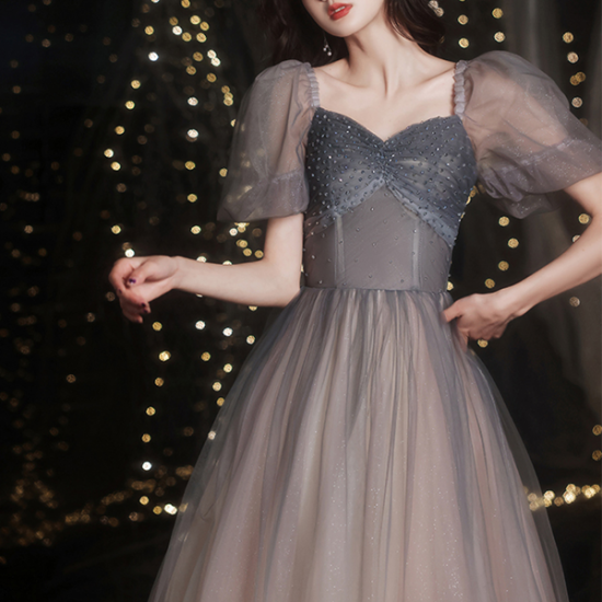 雰囲気のあるプリンセスラインのロングドレス。