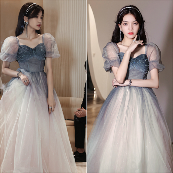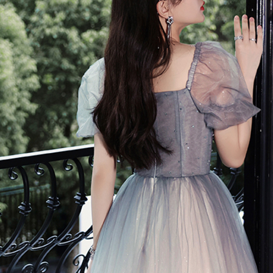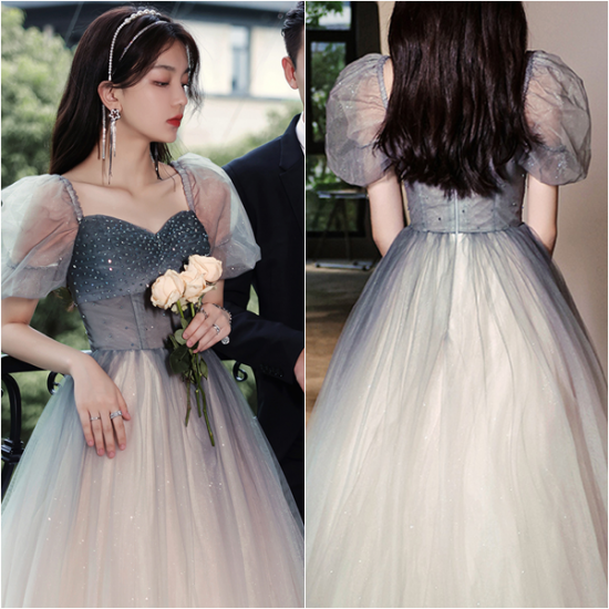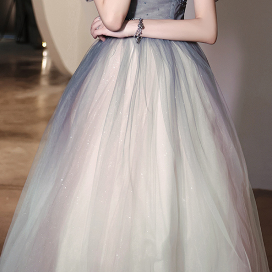 ドレス 優しい グラデーション オーガンジー プリンセスライン ロング丈 スパンコール 輝き 非日常感 とっておき 結婚式 二次会 お呼ばれ
