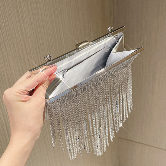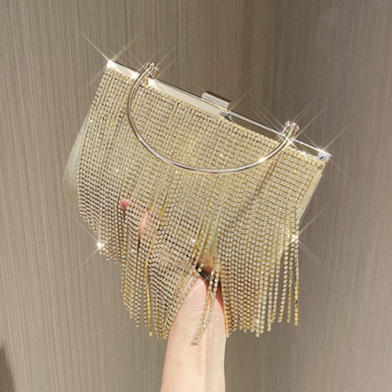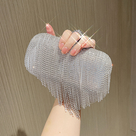 揺れるラインストーンのタッセルが美しいクラッチバッグ。