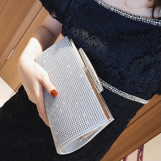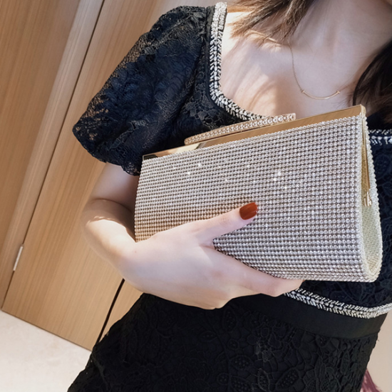 パーティーバッグ ラインストーン 上品リッチ 格上げ クラッチバッグ 直線的フォルム スタイリッシュ 頼りになる 結婚式 二次会 お呼ばれ