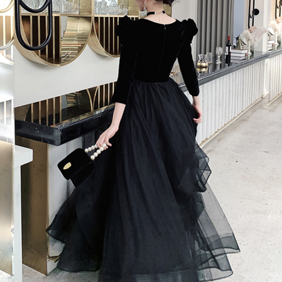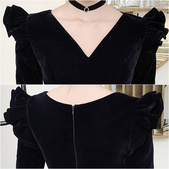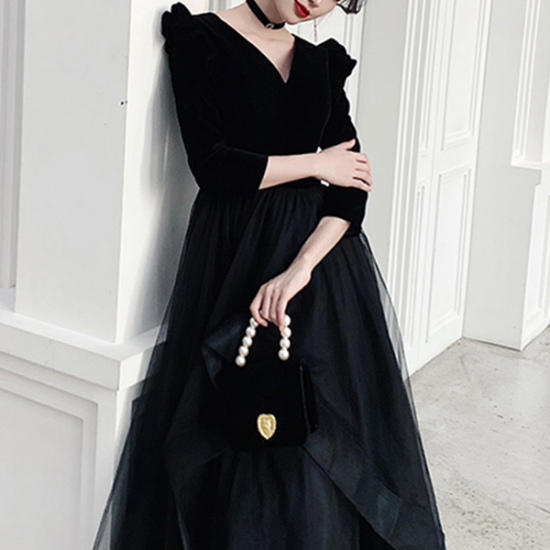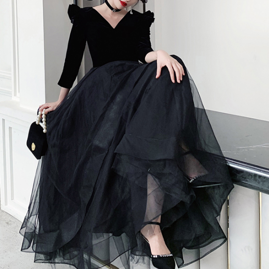 ドレス 女心 ベルベット フリルスリーブ 斜めティアード 鮮度 ロングチュール 非日常感 ドラマチック シルエット 結婚式 二次会 お呼ばれ