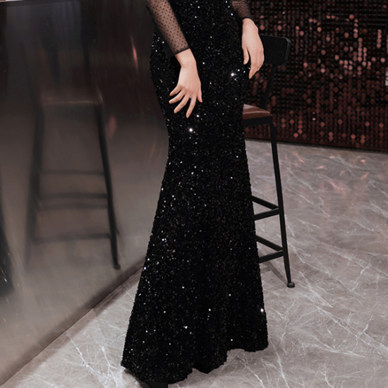 スパンコールの煌めき×セクシーな透け感を楽しむマーメイドドレス。