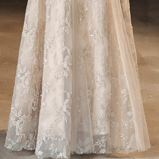 厚みのある上質なフラワー刺繍にパールビーズを散らしました。