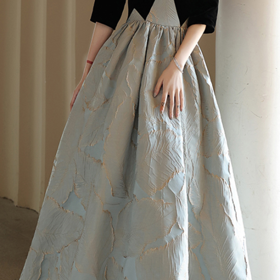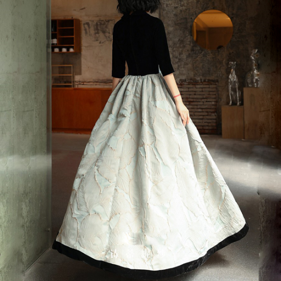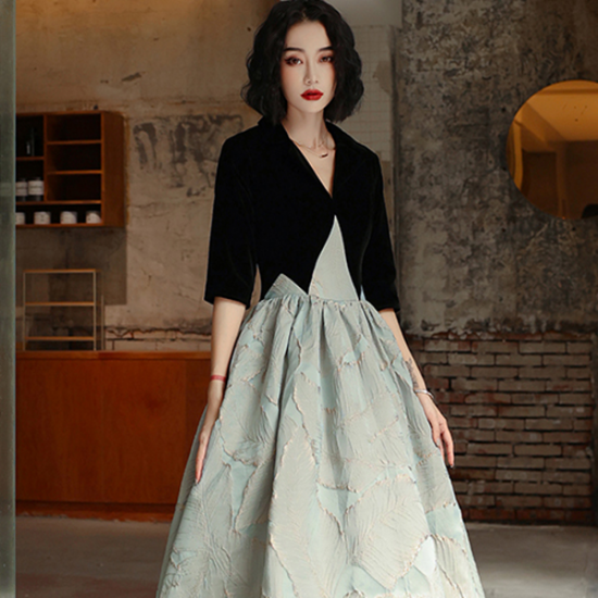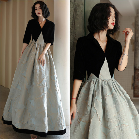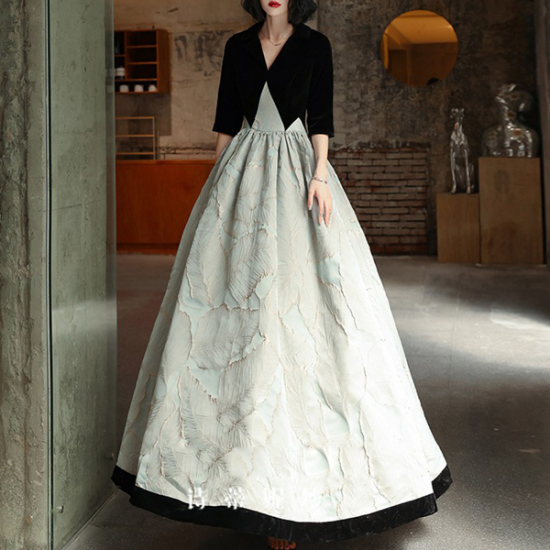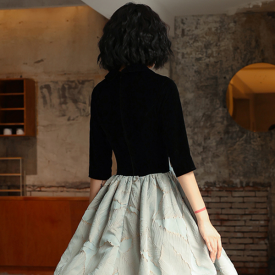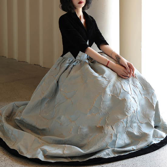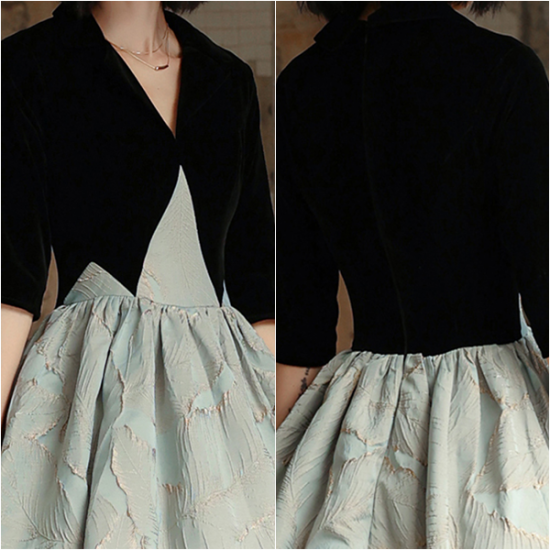 ボレロ風デザインがモダンな、プリンセスラインのバイカラードレス。