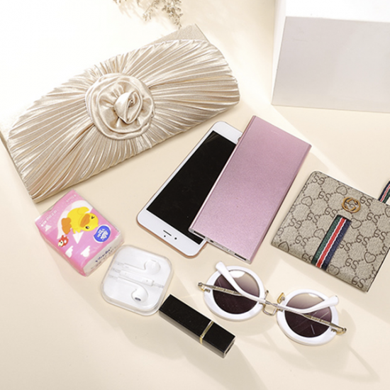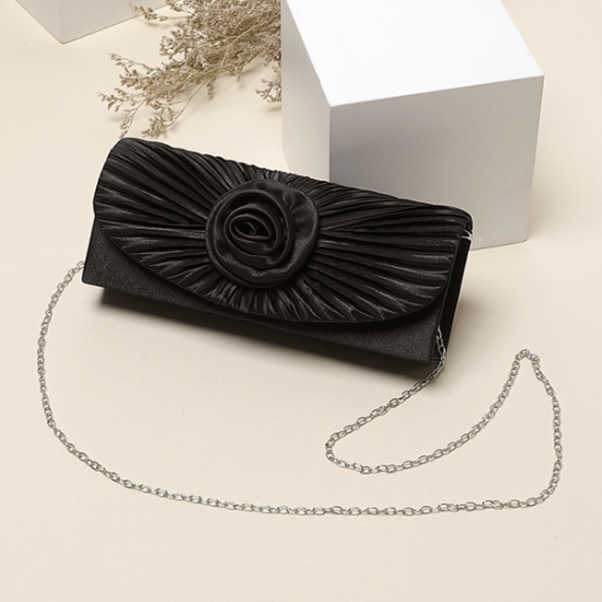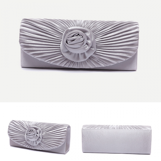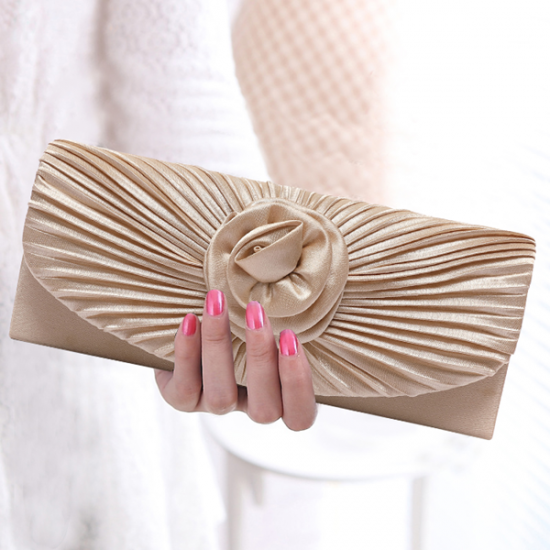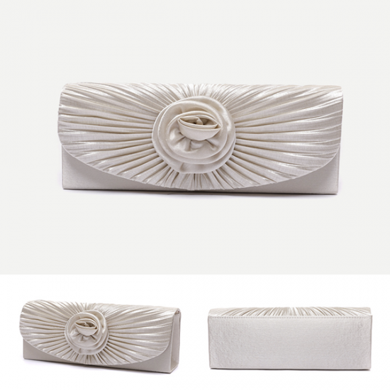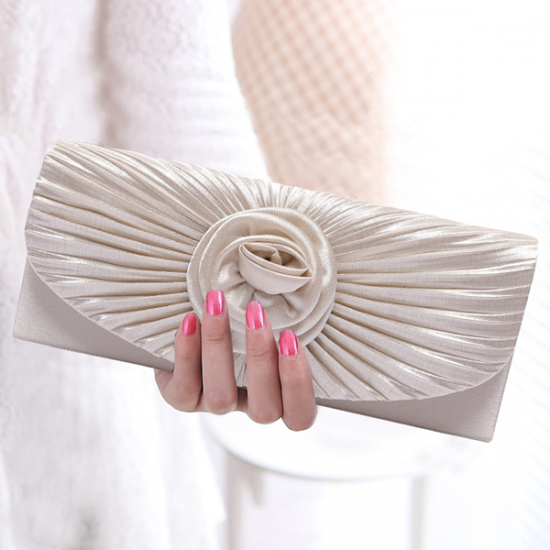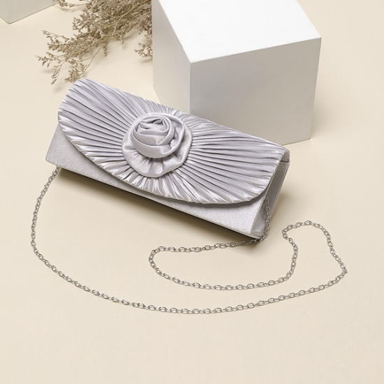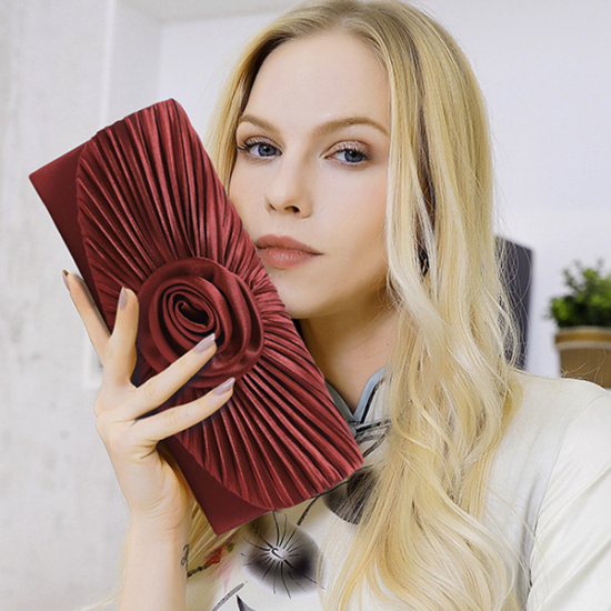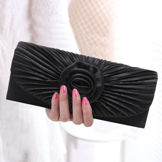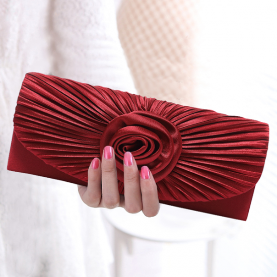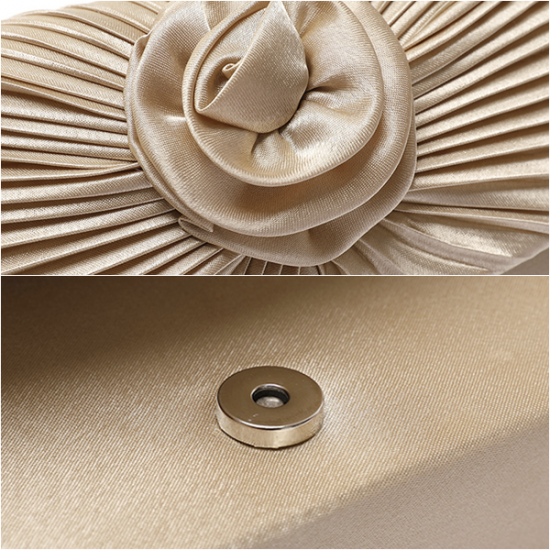 パーティーバッグ サテンプリーツ 薔薇 ソフト クラッチバッグ 上品エレガント 華やぎ 収納力 結婚式 二次会 お呼ばれ