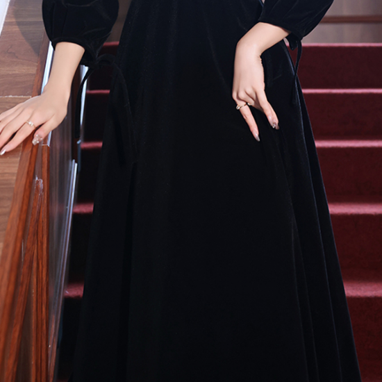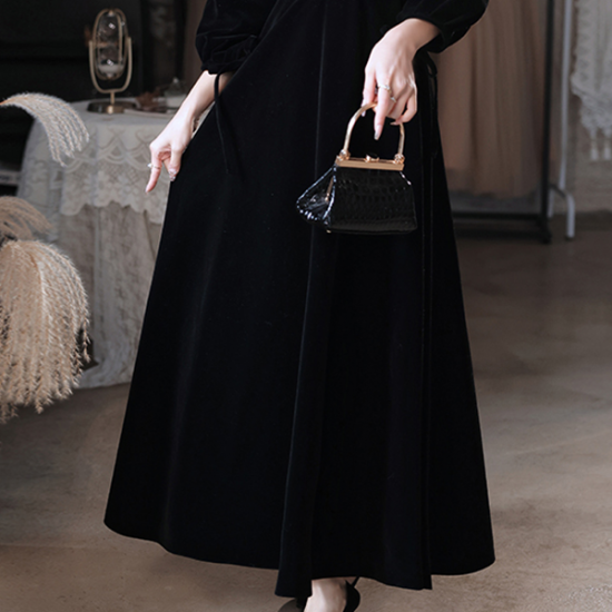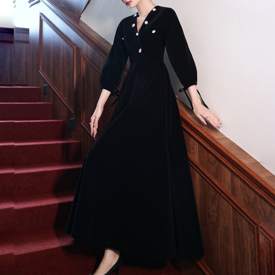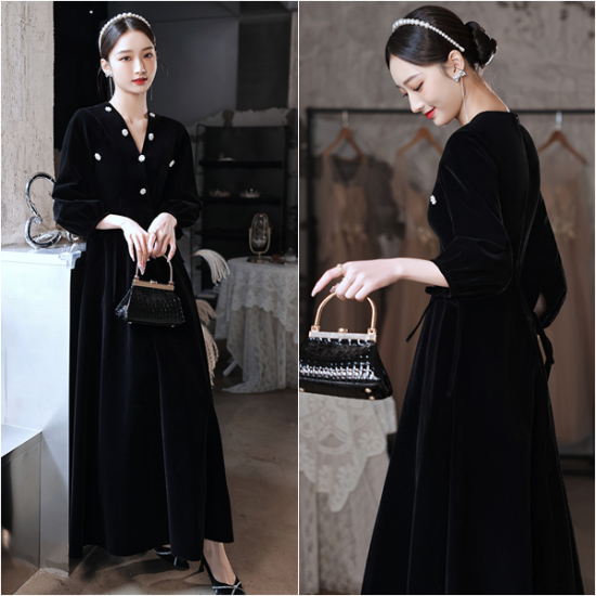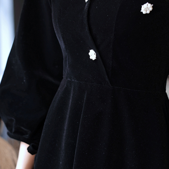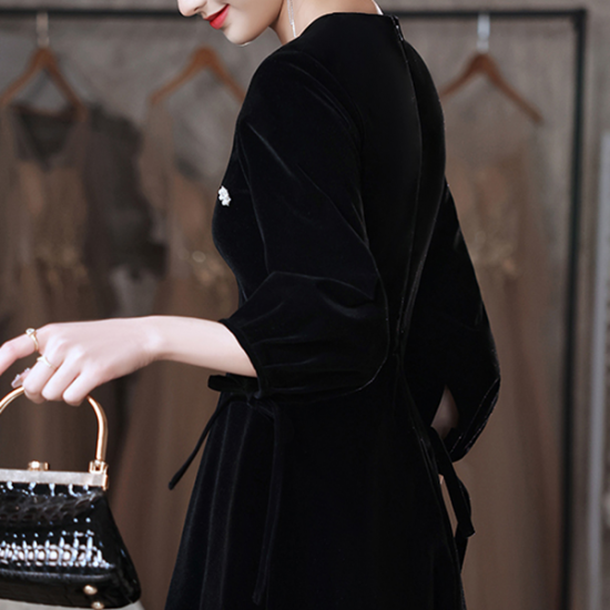 ドレス ドレッシー ベルベット カシュクール パールビジュー 華やぎ ハイウエスト スタイルアップ マタニティ プラスサイズ S〜6XL 結婚式 二次会 お呼ばれ