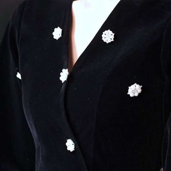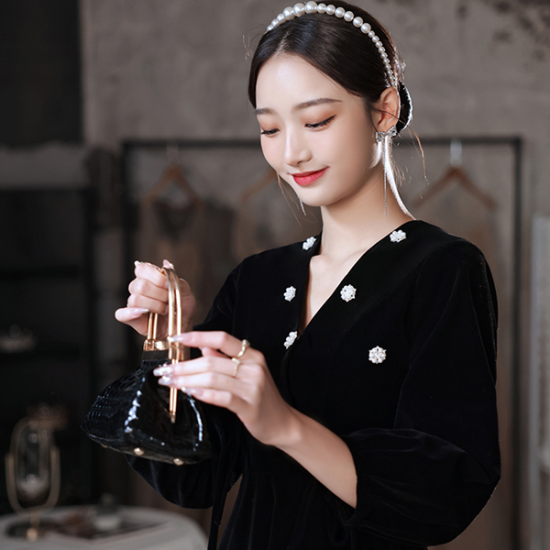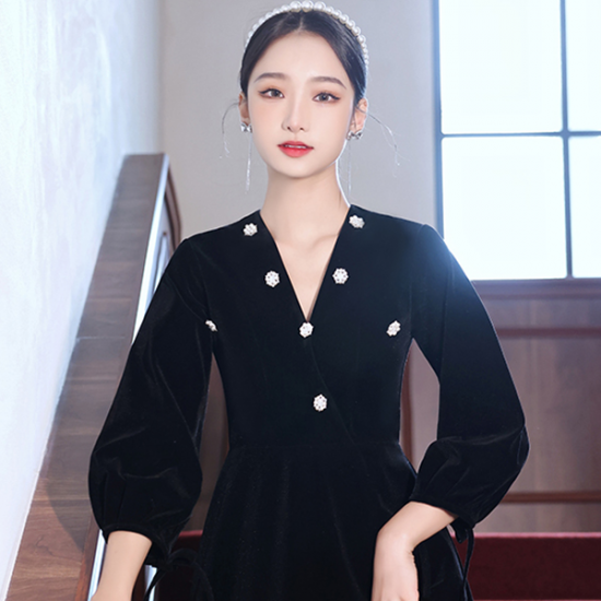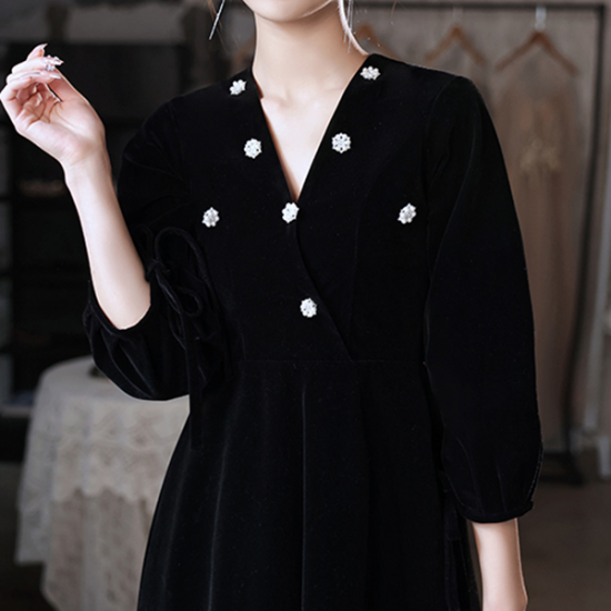 ドレッシーなベルベット素材のカシュクールドレスは、
