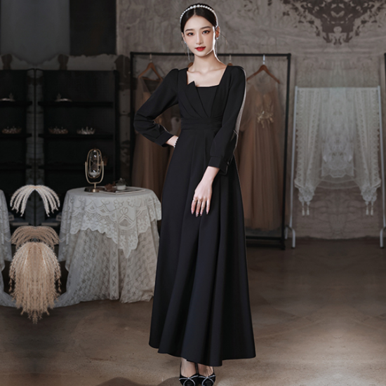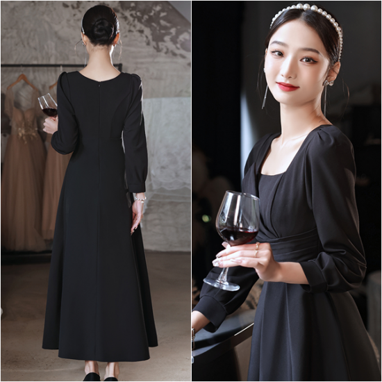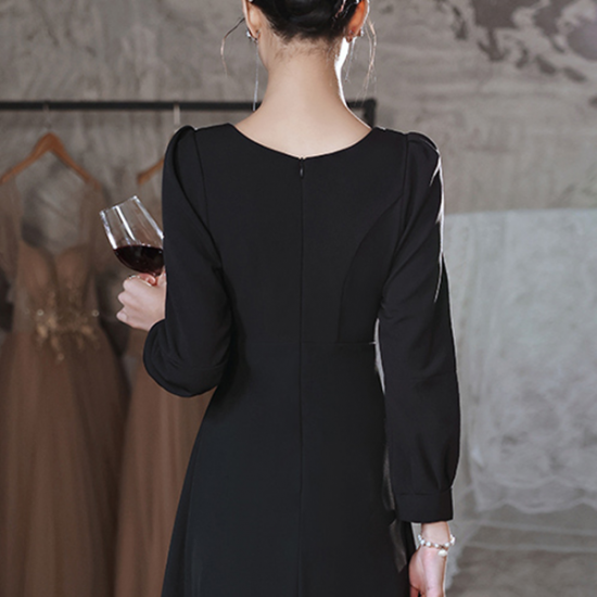 ドレス ノーブル ウエストタックドレス アシンメトリー ネックライン ゆるやかフレア きちんと見え 女らしい 結婚式 二次会 お呼ばれ