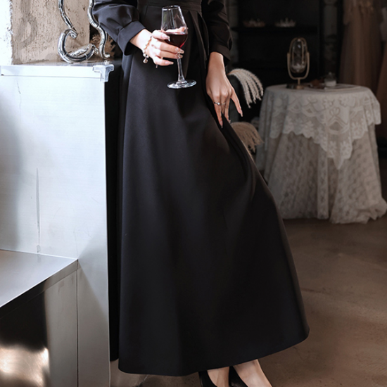 ゆるやかなフレアが広がり、きちんと見えて女らしい1枚です。